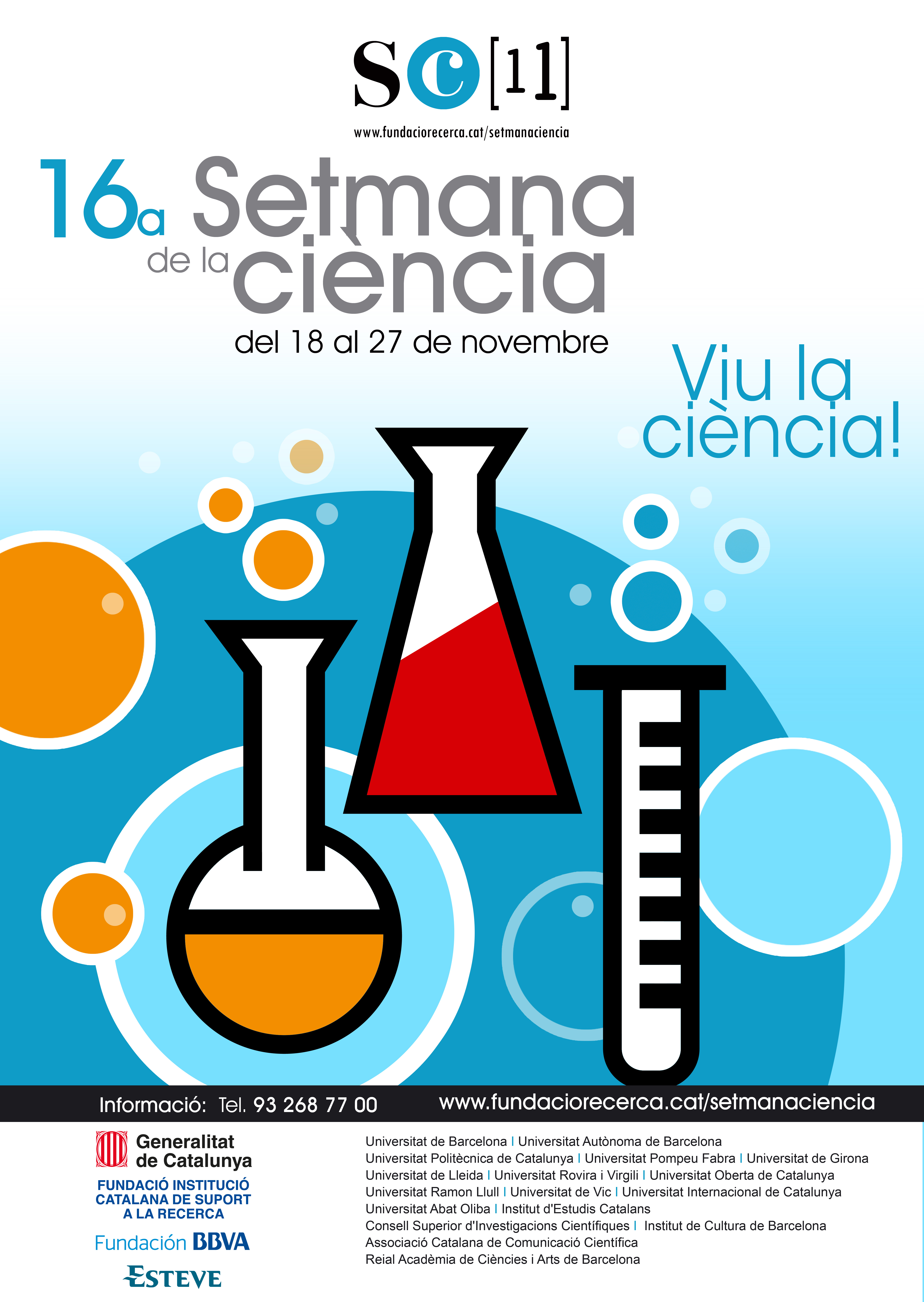 Un any més, la ciència serà la gran protagonista durant una setmana. La Fundació Institució Catalana de Suport a la Recerca ha fet difusió, amb el suport de l’ACCC, entre altres, d’un munt d‟activitats que amb motiu de la Setmana de la Ciència es desenvoluparan a diferents indrets del país del 18 al 27 de novembre. La Fundació ha indicat que la participació a la 16a edició de la Setmana de la Ciència «està oberta a totes les entitats que estiguin interessades en dur a terme activitats adreçades a la ciutadania i que estiguin relacionades amb la ciència i la tecnologia, en un sentit ampli». Enguany la Setmana de la Ciència s‟adhereix a la celebració de l’Any Internacional de la Química i l’Any Internacionals dels Boscos. L’organització ha disposat un web on és possible inscriure’s a les activitats proposades. Cal entrar al web i fer-ho mitjançant l’Agenda Científica que es troba a la plataforma digital Recerca en Acció. Durant la Setmana de la Ciència, l’Associació Catalana de Comunicació Científica col·labora amb el Consell per la Igualtat de les Dones de Les Corts i el mercat de Les Corts per apropar la ciència a la ciutadania. L’ACCC coorganitza dos tallers gastronòmics i un cinefòrum el 24 de novembre.
