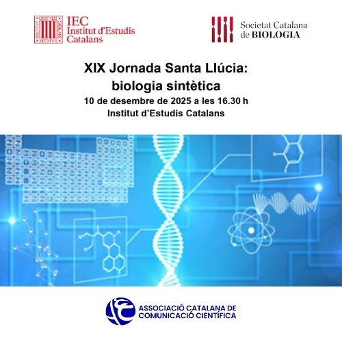 La Secció Biologia i Societat, de la Societat Catalana de Biologia proposa, amb la col·laboració de l’Associació Catalana de Comunicació Científica, una nova jornada de Santa Llúcia. Aquesta trobada està pensada per a apropar els darrers avenços i coneixements científics a un públic ampli, tant acadèmic com general, interessat en la ciència i els temes d’actualitat. Aquesta edició, que tindrà lloc el proper dimecres 10 de desembre de 2025, a la sala Pi i Sunyer de l’Institut d’Estudis Catalans, tindrà la “biologia sisntètica” com a eix central.